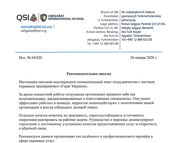 Рекомендательное письмо от Ashgabat International School