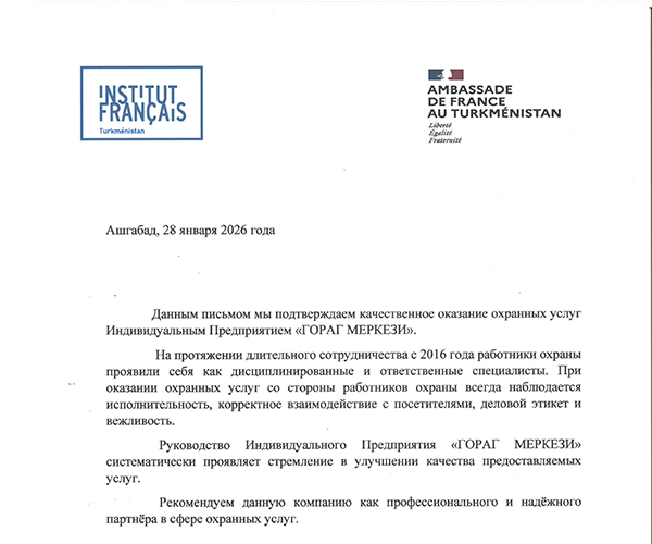 Благодарственное письмо от Institut Français