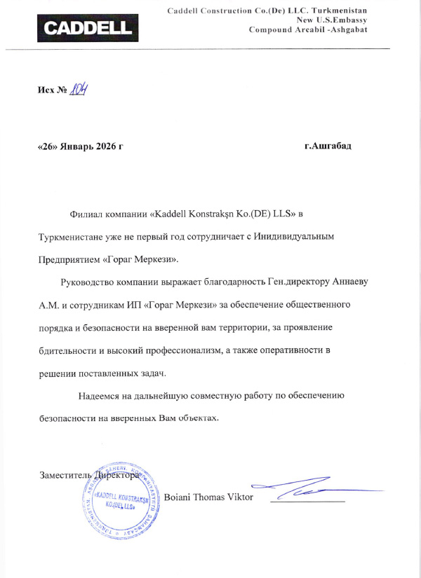 Благодарственное письмо от Caddell
